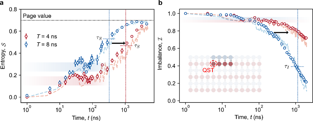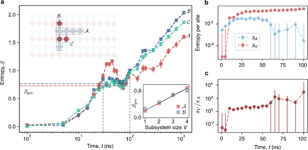 Fig.4 Entanglement dynamics and volume-law scaling. (Image by Institute of Physics)
