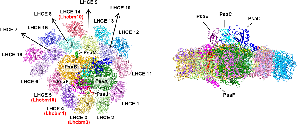 Fig. 1. Overall structure of the Euglena PSI-LHCE supercomplex